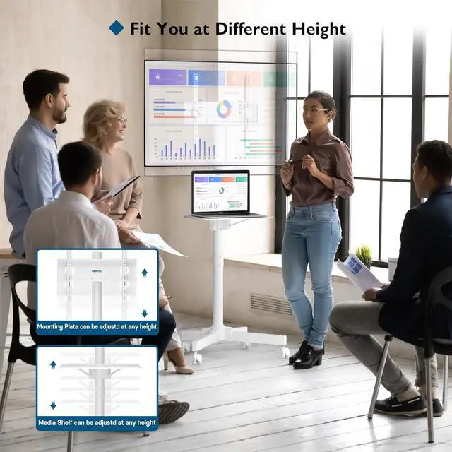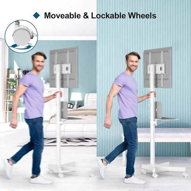 MOBILE & VERSATILE USE Effortlessly roll your TV cart from room to room with lockable wheels. Perfect for home, office, schools, or trade shows, this portable stand offers maximum flexibility.