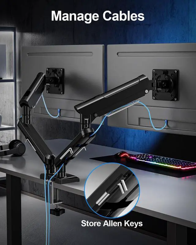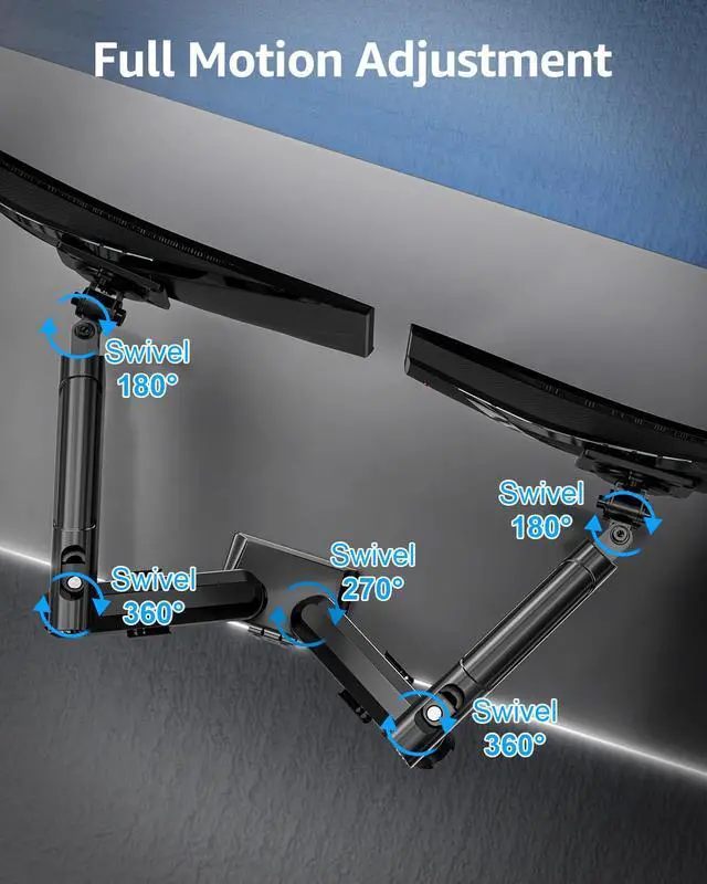 Dual Monitor Mount Fits 13 to 32 Inch Computer Screen, Dual Monitor Arm Hold up to 22lbs Each, Full Motion Monitor Desk Mounts for 2 Monitors, Gas Spring Monitor Stand, VESA Mount, Freelift Pro