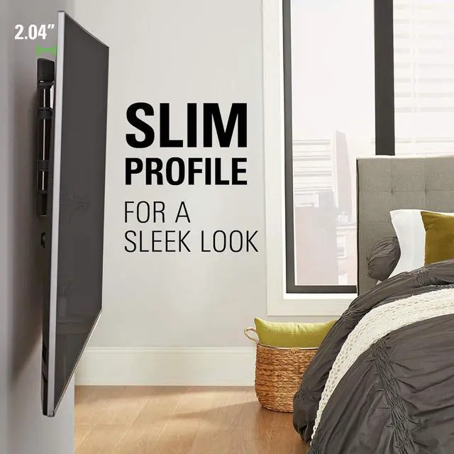 Low profile design places TV close to the wall for a streamlined look that complements todays sleek TVs