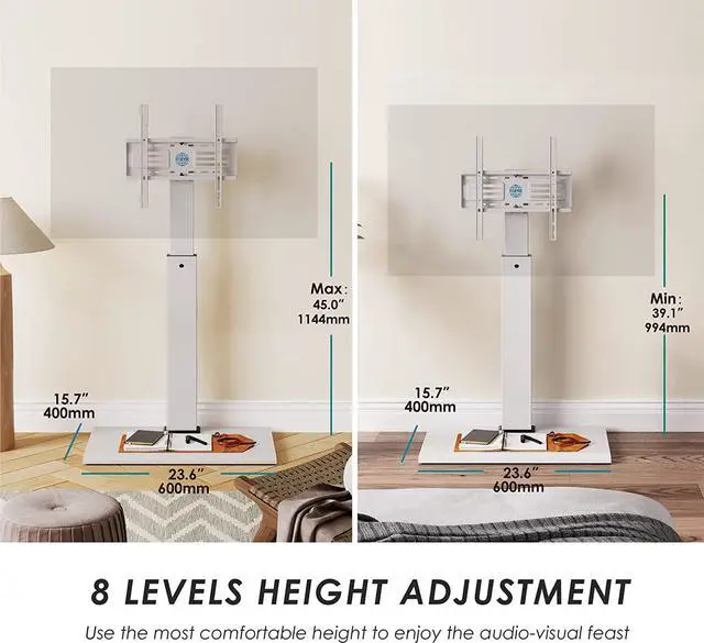 User-Friendly InstallationTheres no need to drill your beautiful wall, and the TV stand mount for the living room is easy to put together by following the installation manual. FITUEYES TV floor stand will provide necessary tools and hardware to get your portable TV stand, and instructions are pretty straightforward.