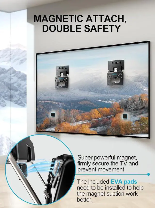 Robust Support: Crafted from solid steel, this wall mount TV bracket guarantees long-lasting performance, supporting up to 100 lbs of weight. Together with the N52 super powerful magnets on the back, your TV will be firmly secured on the wall without any movement