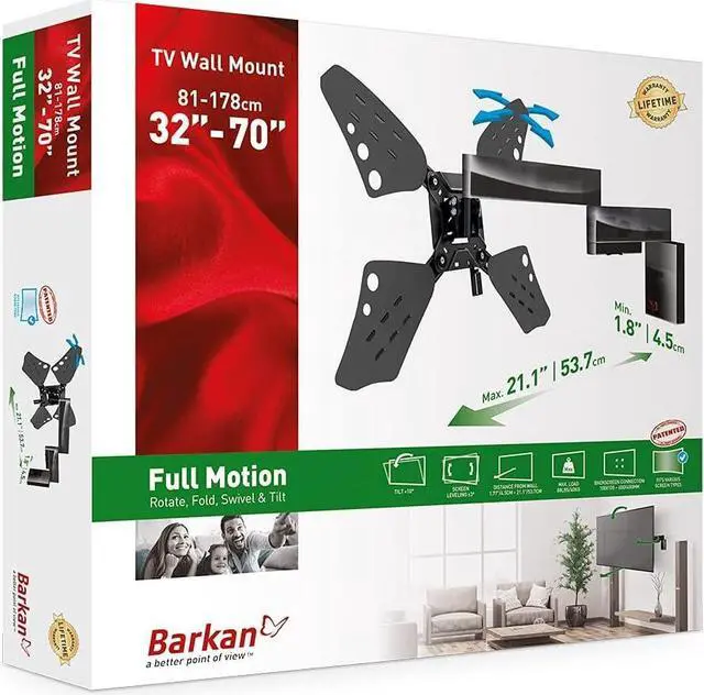 WORLD KNOWN BRAND - Since its foundation in 1988, Barkan Mounts has been working to enhance the viewing experience of the customer. Our expertise is in the development, manufacturing and marketing of designed and innovative TV Mounts. Our customer service experts are available every day of the week, and are ready to help! Visit our website to find more information, any kind of help, manuals, FAQ and more.
