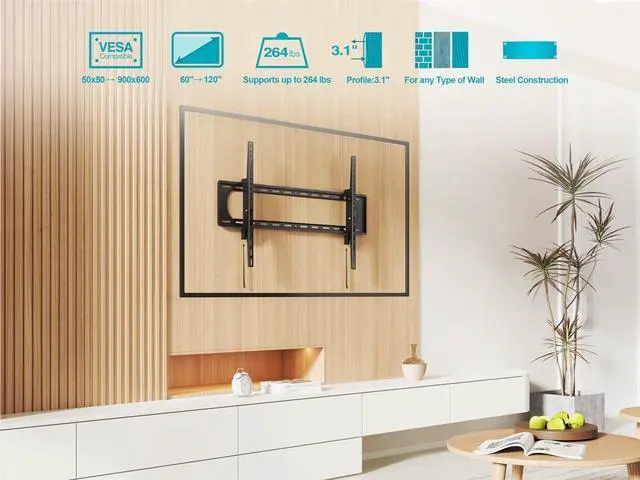 Spring-tensioned locking lugs with quick-release pull tabs for simple TV removal