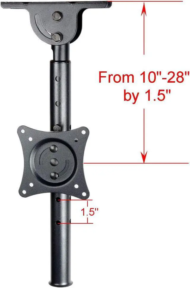 Swivel 360 degrees, Rotate 90 degrees. The TV plate center to ceiling adjustable from 10" to 28" by 1.5 "