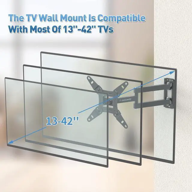 Tv Wall Mount Applicability: TV brands between 13 and 42 inch screen sizes and up to 44 lbs, with VESA 75x75mm 200x200mm mounting pattern fits. Please verify the size, weight, and VESA pattern of your TV before purchase