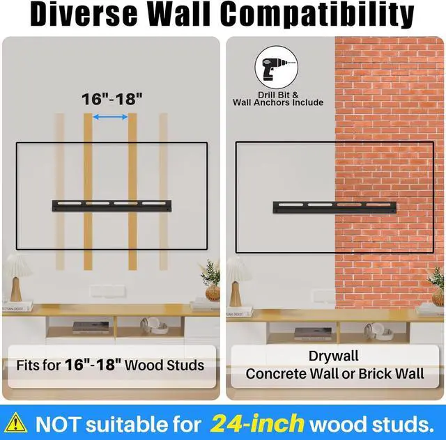 1.2 " Low-profile DesignLow Profile Drywall TV Mount is Space-saving design closer to the wall, creating a sleek and modern look while also saving valuable floor space. It is perfect for those who want to create a minimalist and stylish home entertainment setup.
