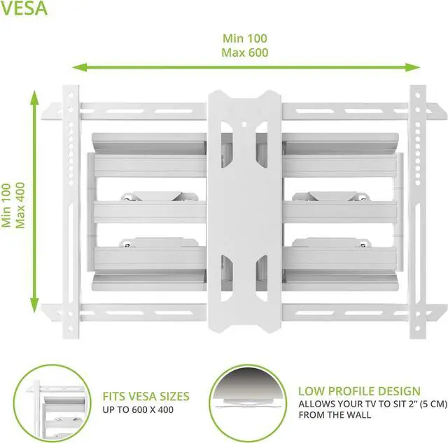 Clean appearance the Pdx650 Articulating TV wall mount Comes with magnetic wall plate covers to hide any sign of installation, as well as cable management raceways to keep your viewing area looking tidy. Its low-profile design allows you to push your TV back to sit 2 inches from the wall, while a highly durable powder-coated finish provides a premium look and feel.