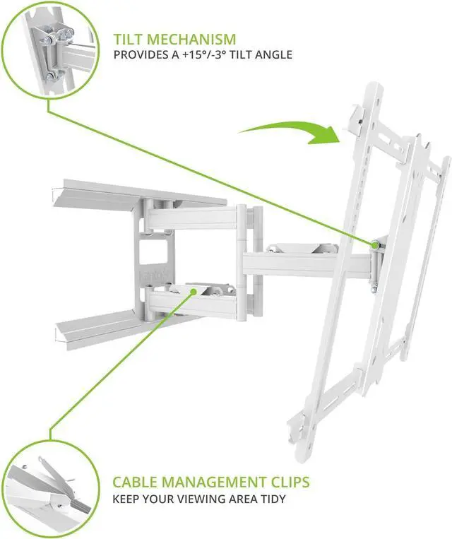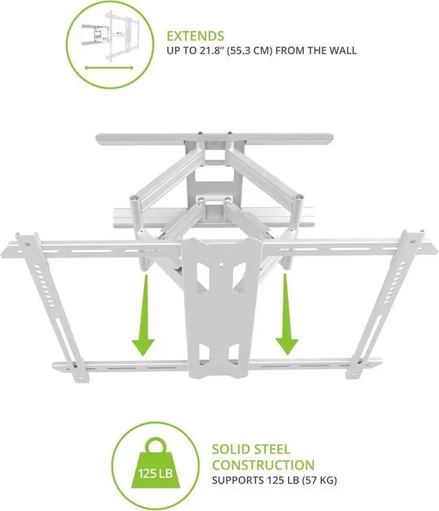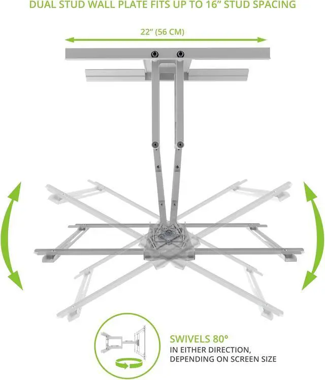 Better viewing experience featuring two wishbone arms for maximum stability, this articulating wall mount can extend 21. 8 from the wall, giving you the freedom to pan and swivel your TV to accommodate a variety of viewing positions. Swivel It up to 80° left and right, depending on screen size, and tilt it 15° forward to further improve line-of-sight. If glare is an issue, the Pdx650 can also tilt 3° backward in order to avoid light sources.