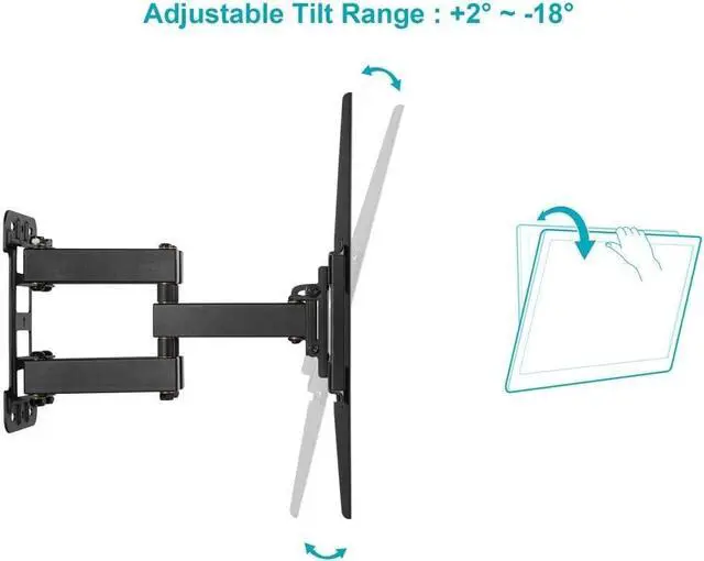 For displays ranging up to 70 inch and weighing up to 99 lbs. VESA mounting pattern between 200x200 and 600x400 to any type of wall. It can be tilted from +2 - -18, making it ideal for overhead installations. Full Motion Monoprice TV wall mount.