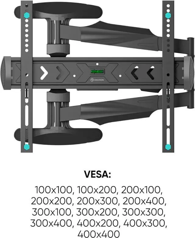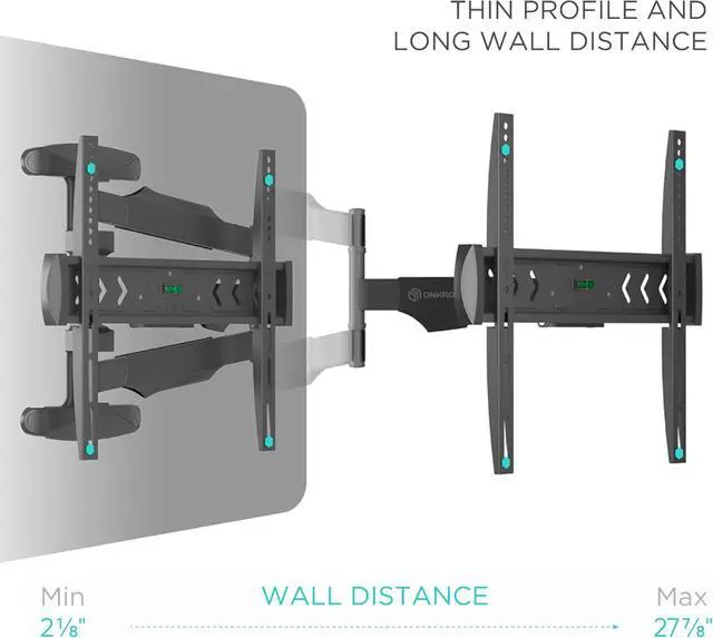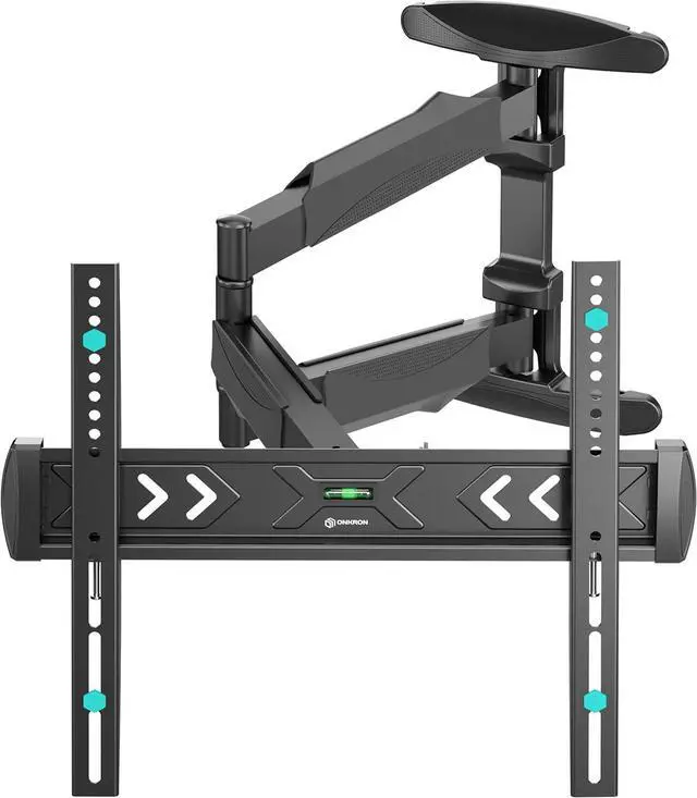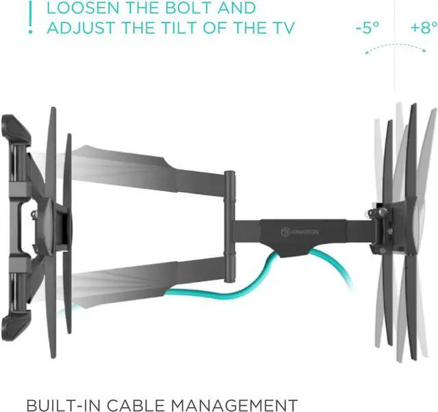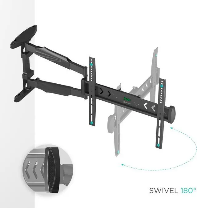 ADJUSTABLE TV WALL MOUNT | You can tilt television mount from -5° to +8° and swivel TV wall mount bracket 180° | Pull out TV wall mount long arm and adjust the distance to the wall from 2.5 " up to 27.9 " | This extending TV wall mount comes with a built-in spirit level for precise installation | Once your single stud TV mount wall is installed, you can align the screen horizontally