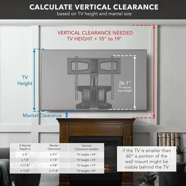 MOTORIZED FIREPLACE TV MOUNT: The MOUNT-IT! Motorized Fireplace TV Mount isnt just any fireplace TV mount pull down; it' s a sleek, modern solution to elevate your viewing experience. With its whisper-quiet motor, it effortlessly lowers and raises your TV to the perfect viewing height, blending seamlessly with your living space aesthetics. Ideal for those seeking a harmonious balance of style and functionality, especially above the fireplace.