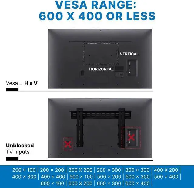 VERSATILE MOUNT: Vancos flat screen TV wall mount is VESA compatible up to 600 x 400 or less and will fit most 37 to 70-inch LED, OLED, LCD Samsung/LG/Sony/Panasonic/TCL/Vizio TV' s making it one of the most universal tv mounts.