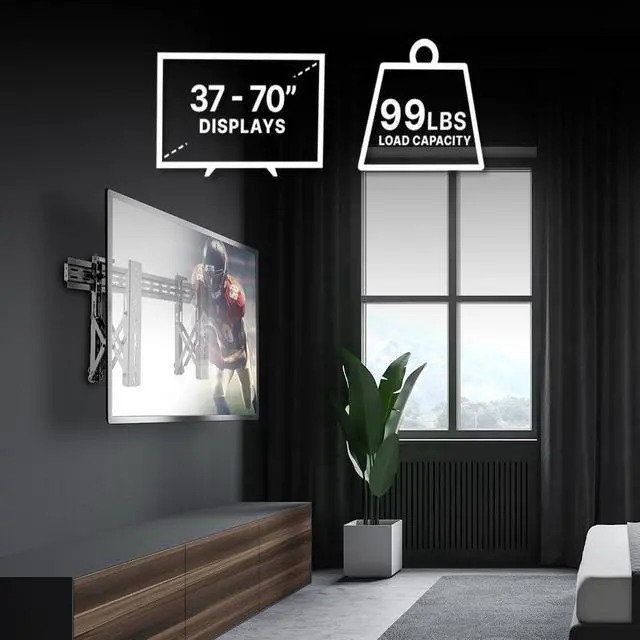 ADJUSTABLE EXTENSION: This large TV wall mount lets you extend it up to 8.4 inches for the perfect viewing angle or retract it to just 2.6 inches for a sleek, space-saving look that will enhance your home aesthetics.