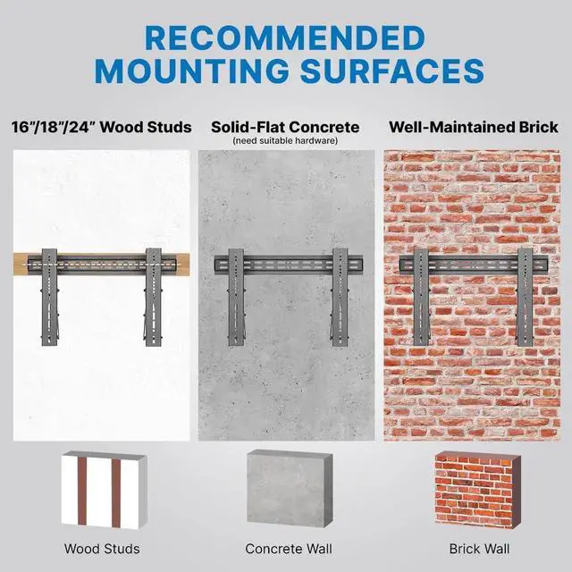 STURDY & DURABLE: Vancos heavy duty mount tv bracket fits 16, 18, and 24 stud spacing and has a load capacity of 99 lbs. ensuring the TV is securely held in place.
