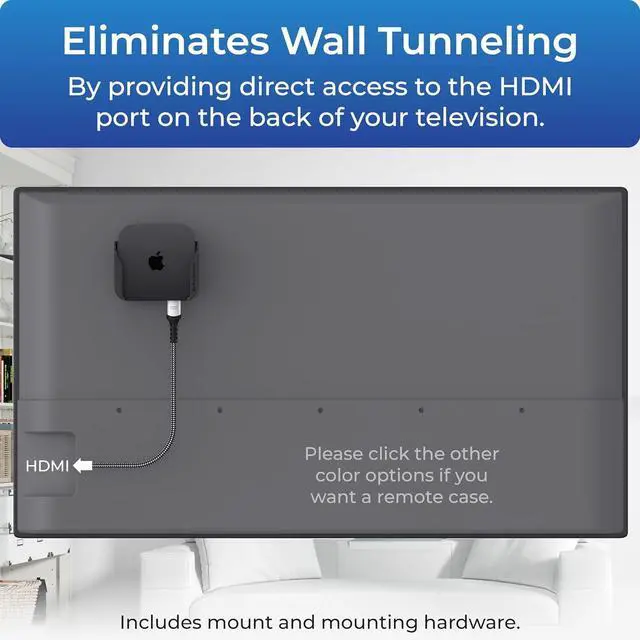 MOUNT ATTACHES APPLE TV TO THE BACK OF YOUR TELEVISION using a special adhesive that is formulated for the elevated temperatures of televisions. Perfect for televisions that are mounted on a wall. (Screws are also included for optional wall mounting. )