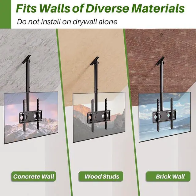 Easy Installation: Hanging tv mount from ceiling comes with numbered parts, necessary tools, step-by-step instructions. Ideal for high ceiling home, bars, restaurants, fitness centers, school, grocery stores, dental and medical offices