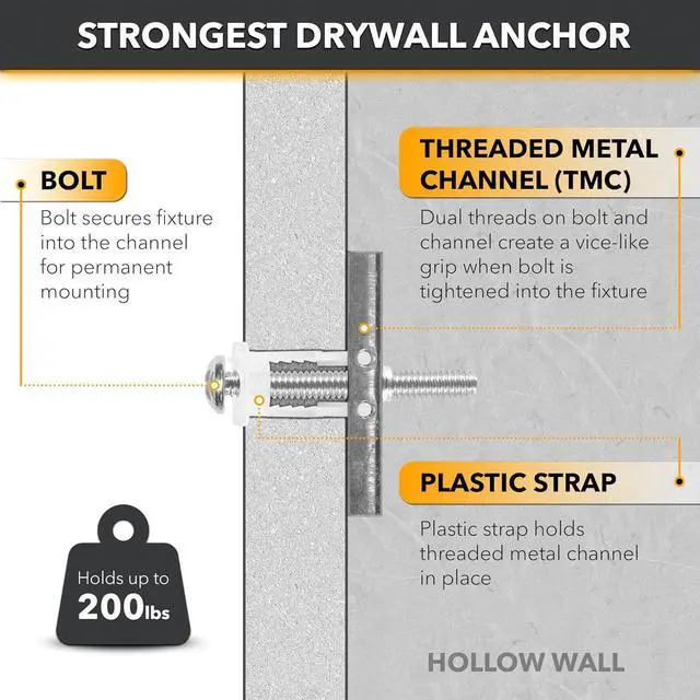 Quality That Lasts - Each anchor is constructed with a corrosion-resistant zinc-plated metal channel and secure plastic straps. The anchor stays in place, even when the bolt is removed, allowing for easy fixture and screw changes. Trust in durability and reliability.