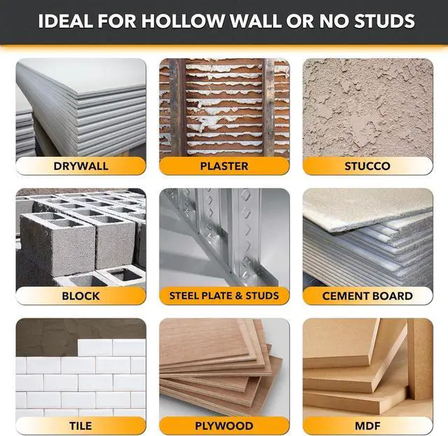 Easy Installation, No Stress - With our innovative drywall anchors, you can pre-install without bolts and avoid them falling behind the wall. Install with confidence in various hollow materials up to 1.5 " thick. Get your project done faster and effortlessly. ADD TO CART now.