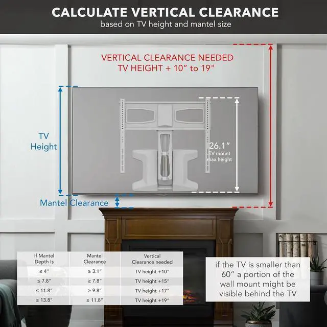 MOTORIZED FIREPLACE TV MOUNT: The MOUNT-IT! Motorized Fireplace TV Mount isnt just any fireplace TV mount pull down; it' s a sleek, modern solution to elevate your viewing experience. With its whisper-quiet motor, it effortlessly lowers and raises your TV to the perfect viewing height, blending seamlessly with your living space aesthetics. Ideal for those seeking a harmonious balance of style and functionality, especially above the fireplace.