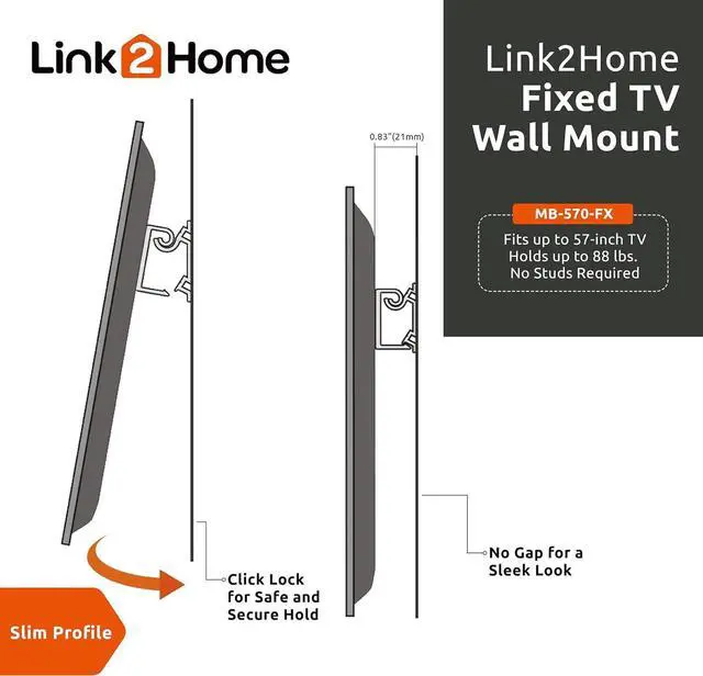 LOW PROFILE TV WALL MOUNT: TV bracket extends only 0.83 inches from the wall for a sleek appearance. Perfect for bedrooms, living rooms and offices.