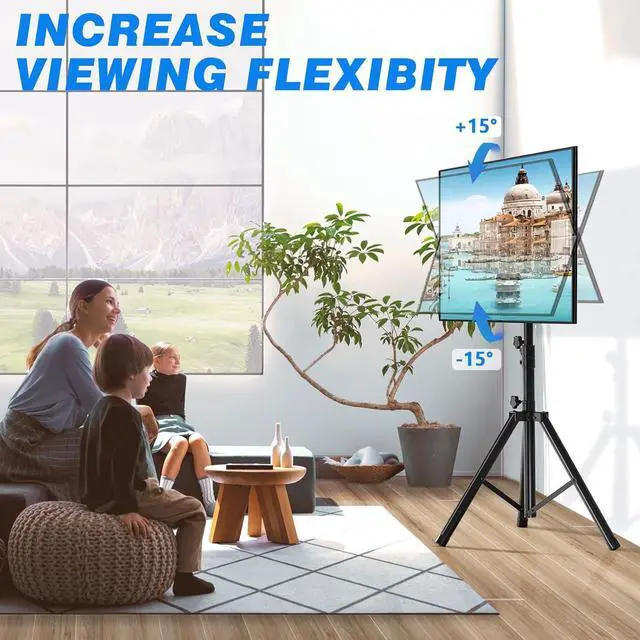 HEIGHT & TILT ADJUSTMENT - EASILY ADJUST FOR OPTIMAL VIEWING ANGLE: Our TV tripod stand is designed to provide a versatile viewing experience; You can easily adjust the TV stand to your preferred height (from 51" to 75" ) and tilt your TV up to a total of 15 degrees up and down for the ideal viewing angle, whether you' re enjoying the big game outdoors or relaxing in your home; It is suitable for all kinds of scenes, living room, bedroom, office, exhibition, outdoor, meet all your needs
