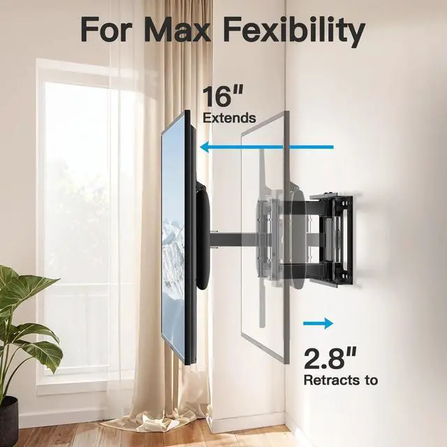 Extension & Profile: Extends up to 16" from the wall and retracts to a slim 2.8" profile.