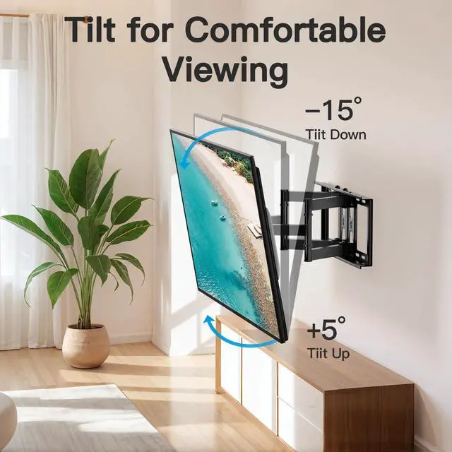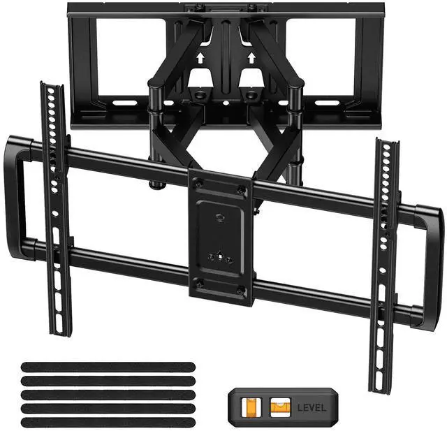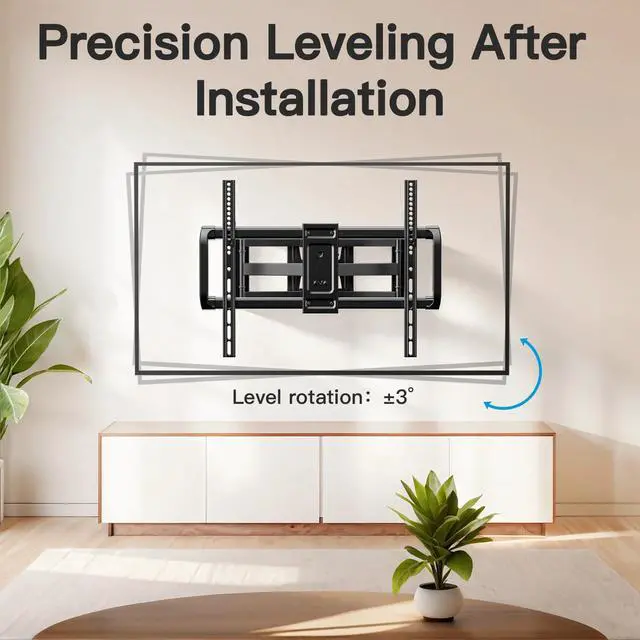 Easy Installation: Pre-assembled arms, integrated bubble level, and included hardware for quick setup.