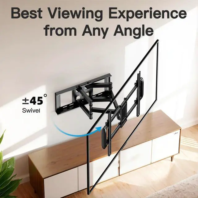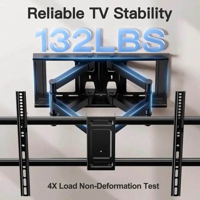 Heavy Duty: Supports TVs up to 132 lbs with dual steel arms, stress-tested at 198 lbs for safety.