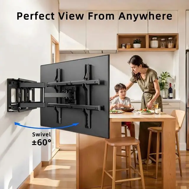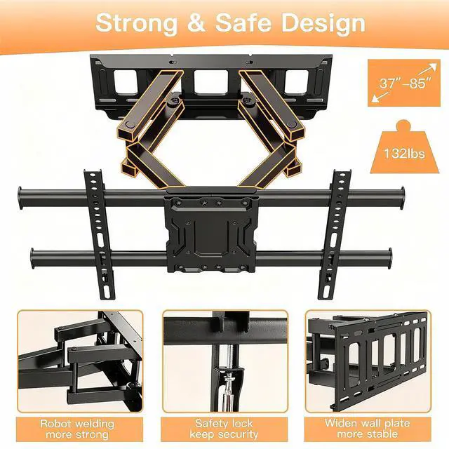 Robust Construction: Crafted from high-strength alloy steel with 30% thicker dual articulating arms, supporting TVs up to 132 lbs (60 kg).