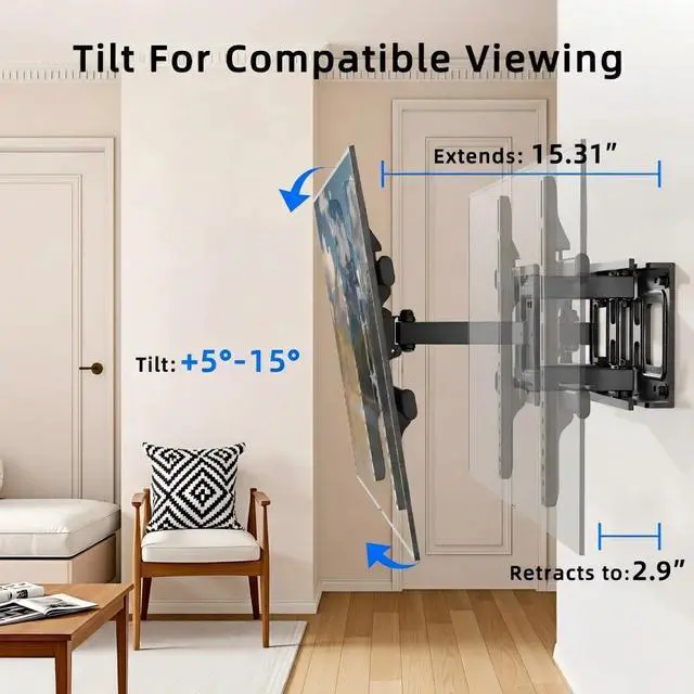 Space Saving: Extends 15.3 inches from the wall for viewing and retracts to a slim 2.9 inches for a low-profile appearance.
