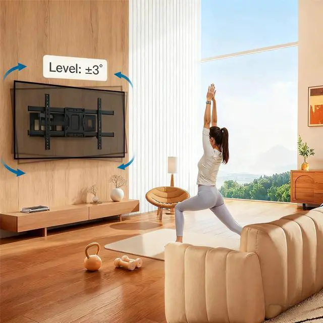 Flexible Viewing: Offers +5/-15 degree tool-free tilt, +/-60 degree smooth swivel, and +/-3 degree leveling for optimal viewing angles and glare reduction.