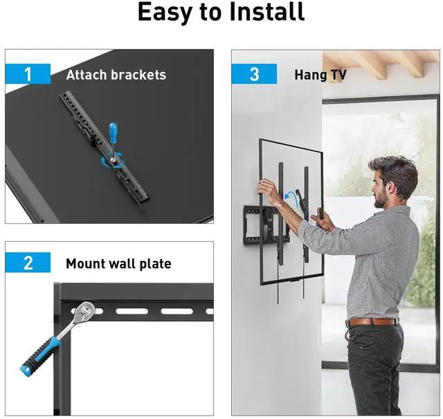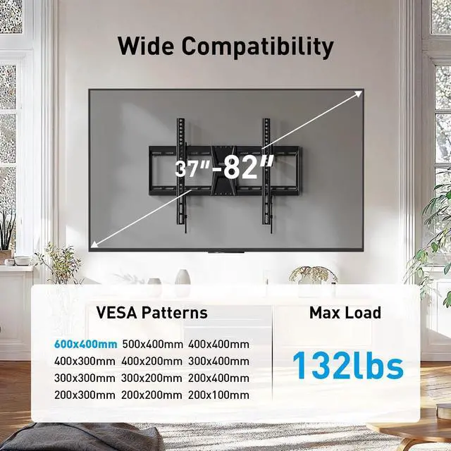 Wide Compatibility: Compatible with 37" to 82" flat or curved TVs, supporting up to 132 lbs (60 kg).