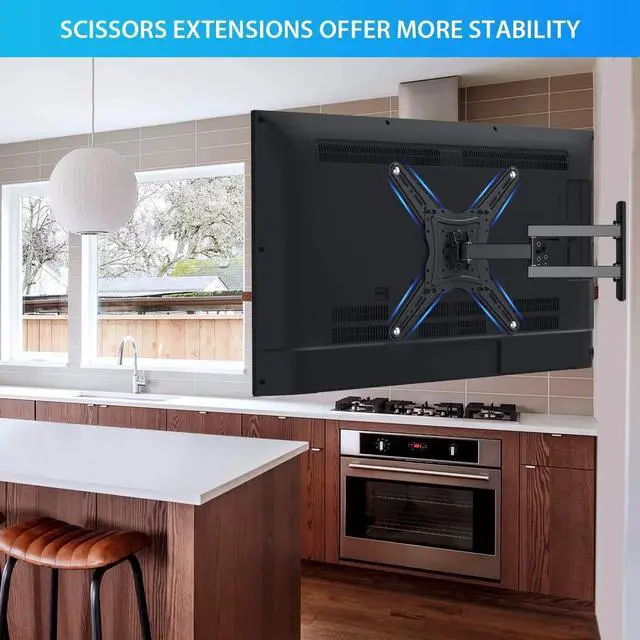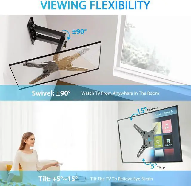 Flexible Viewing: This full motion TV mount offers a +3° to -12° tilt and 90° horizontal swivel for optimal viewing angles, reducing glare and enhancing your viewing experience.