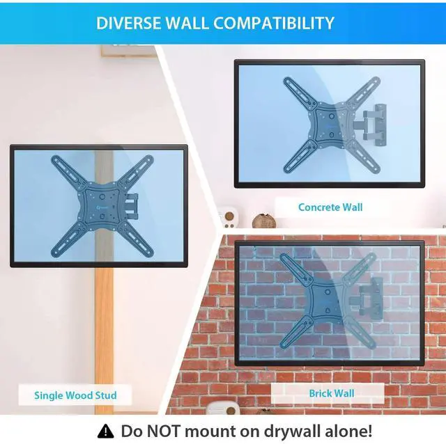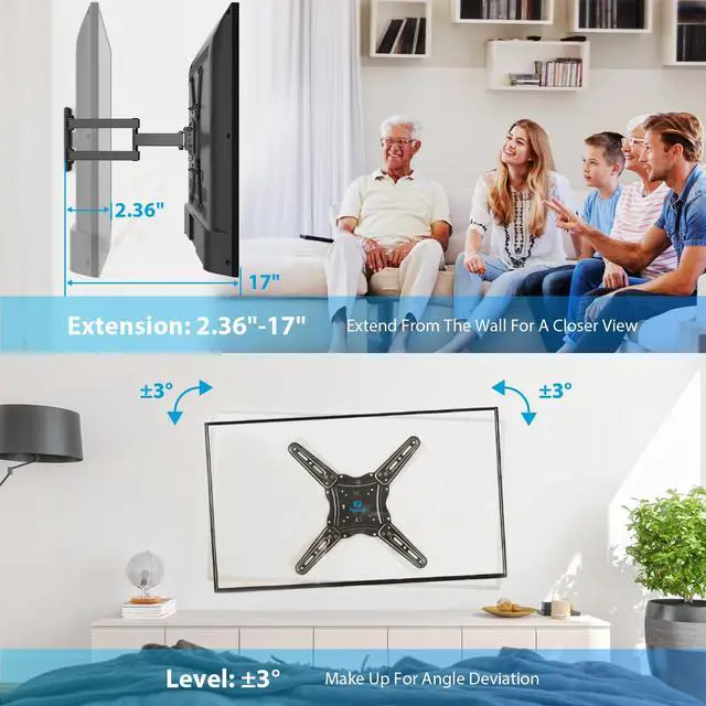 Easy Installation: The mount can retract to 2.2" from the wall and extend up to 17", suitable for single wood stud walls and concrete/brick walls.