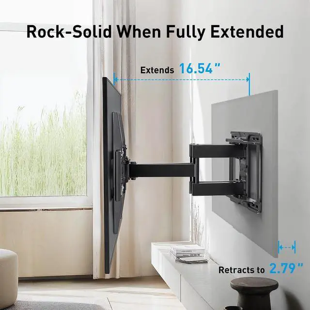 • Space-Saving Design: Extends up to 16.54 inches and retracts to 2.79 inches from the wall, saving valuable space and keeping your setup neat.
