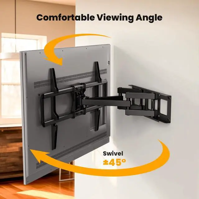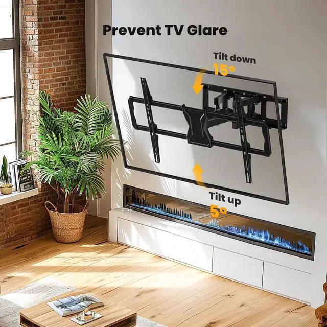 Enhanced Flexibility: Swivel your TV 45 degrees left or right, tilt 5 degrees up or 15 degrees down for optimal viewing and reduced glare.