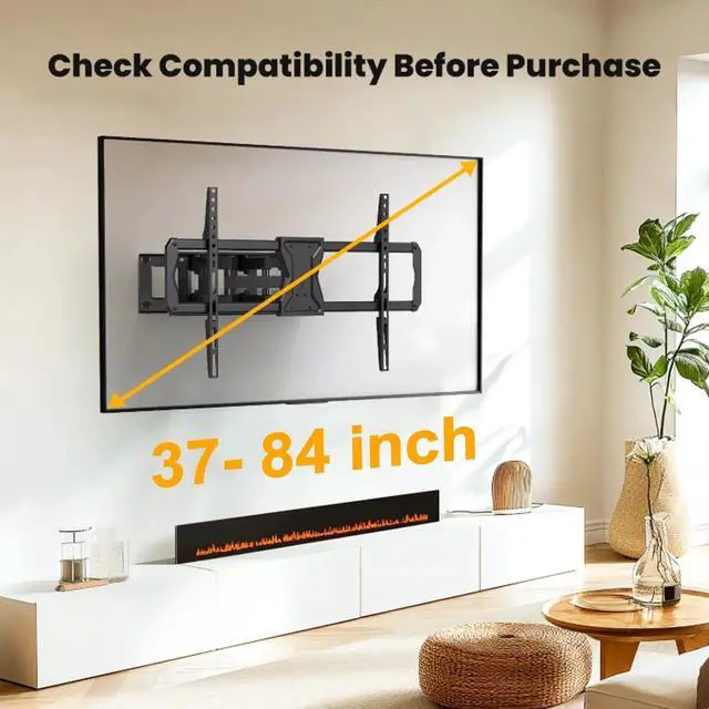 Wide Compatibility: This TV wall mount fits most 37-84 inch TVs with mounting holes from 200x100mm to 600x400mm, supporting up to 110 lbs.
