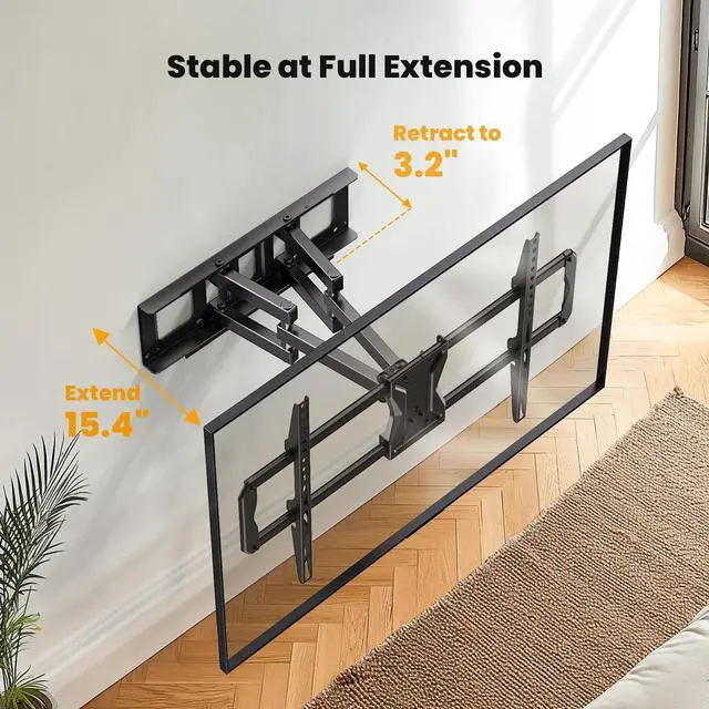 Viewing Comfort: Extends up to 15.4 inches and retracts to 3.2 inches from the wall, with +/- 3 degrees post-installation adjustment for perfect alignment.
