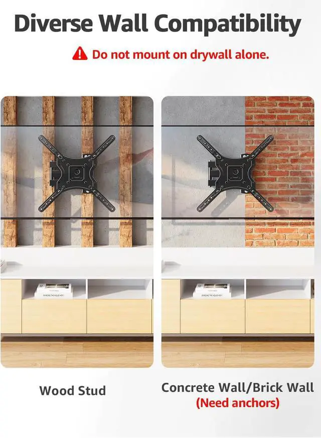 Easy and Quick Installation - Our wall mount is easy to install and comes with a clear step-by-step installation instruction, bubble level, and necessary standard mounting kit. The concrete anchors will be sent per request. Note: Do Not install into drywall alone.