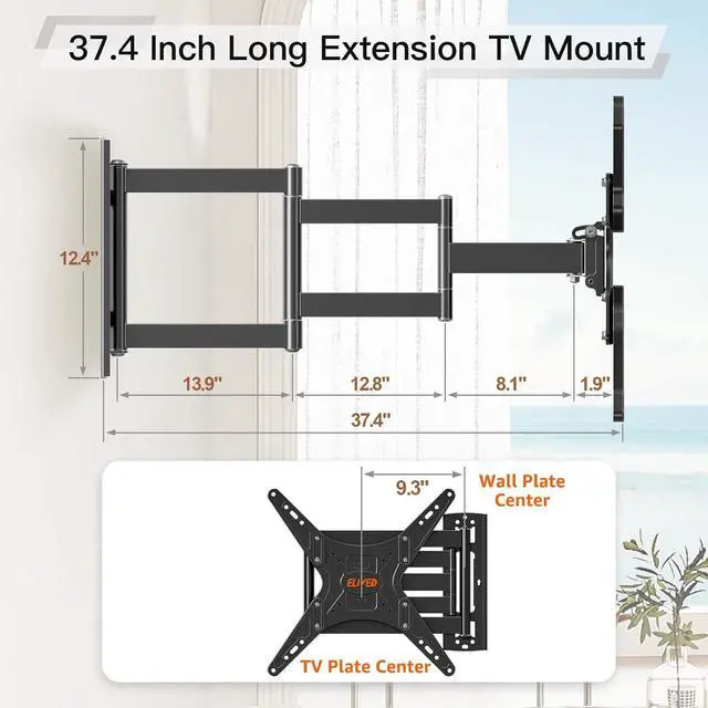 37.4" Long Extension TV Mount - This extra long extension TV wall mount can extend 37.4 from wall to cover more viewing positions. This long arm TV mount can retract 3 to wall for saving space and a clean look. It is an ideal choice for corner placement and you can watch TV anywhere you want.