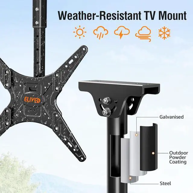 ELIVED Outdoor Ceiling TV Mount for Most 26-65 Inch TVs, Weatherproof TV Hanging Bracket Anti-Rust for Patio, Height Adjustable Ceiling Mount 360° Swivel and Tilt, Max VESA 400x400mm Up to 99 lbs.