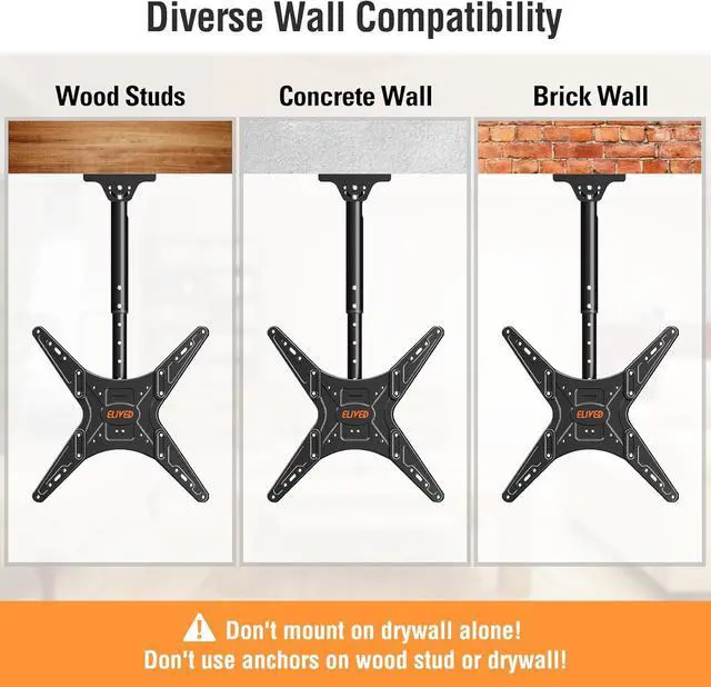 Multi-Scenes Application: ELIVED TV ceiling mount provides a nice choice for a restaurant, coffee shop, gym, grocery store, airport, shopping mall or your home. It fits both flat ceiling and sloped ceiling