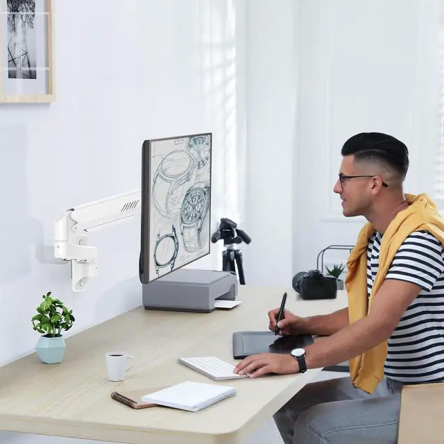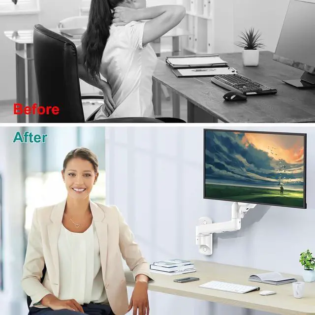 Perfect Space Saver: Wall mounted monitor arm can hold your screen firmly, freeing up more valuable space on your workstation. Comes with the cable management parts, keeping your workspace tidy and organized