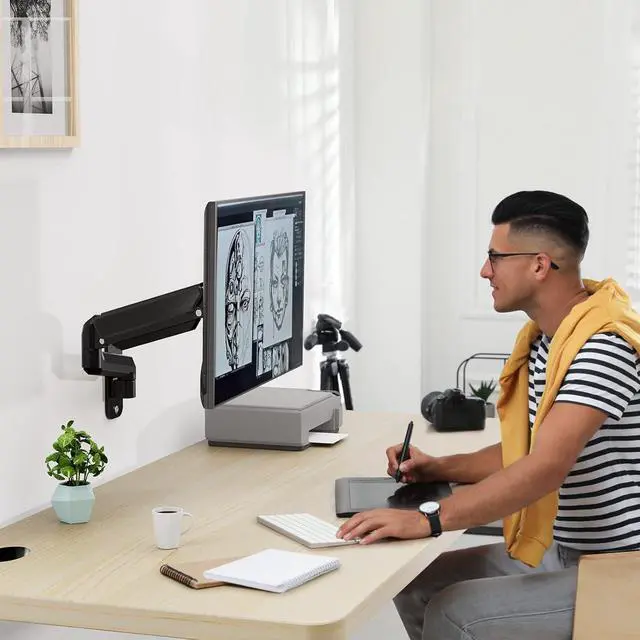 Perfect Space Saver: Wall mounted monitor arm can hold your screen firmly, freeing up more valuable space on your workstation. Comes with the cable management parts, keeping your workspace tidy and organized