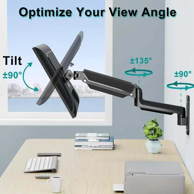 Customize Your View Angle: With our full motion computer monitor wall mount, you can extend and retract your screen up to 21.6", tilt it up to +90°/-90°, swivel it up to +90°/-90°, and rotate 360°. Help to provide you an optimal viewing angle