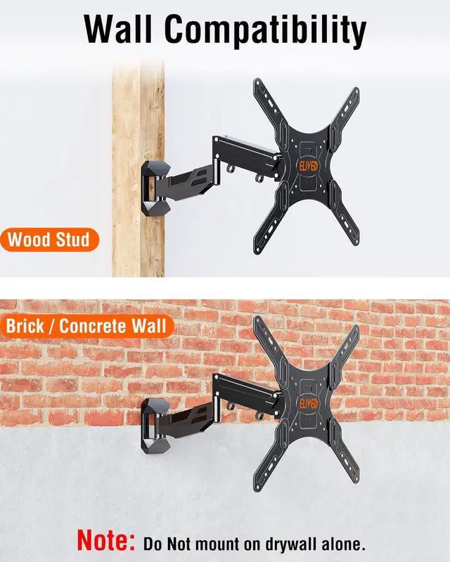 Quick & Easy Installation -TV mount with a step-by-step graphic installation instruction and full range of hardware and is easy to install in 15 minutes. Note: This wall mounts are perfectly for wood stud and concrete wall but NOT for drywall alone. Do Not install onto drywall alone. Concrete anchors will be sent per request.