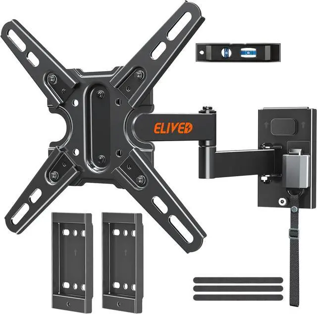 Optimal Viewing Comfort: Enjoy a perfect viewing experience with this full-motion TV mount. It tilts +5°/-15° to reduce glare, swivels +/- 90°, extends up to 14" for flexible positioning, and retracts to 2.7" to save space. The mount also allows for +/-3° leveling after installation, ensuring the ideal angle for your entertainment