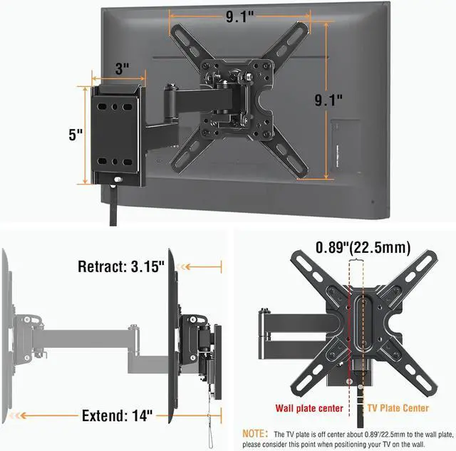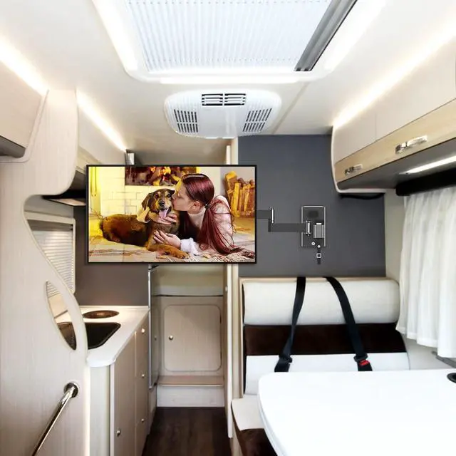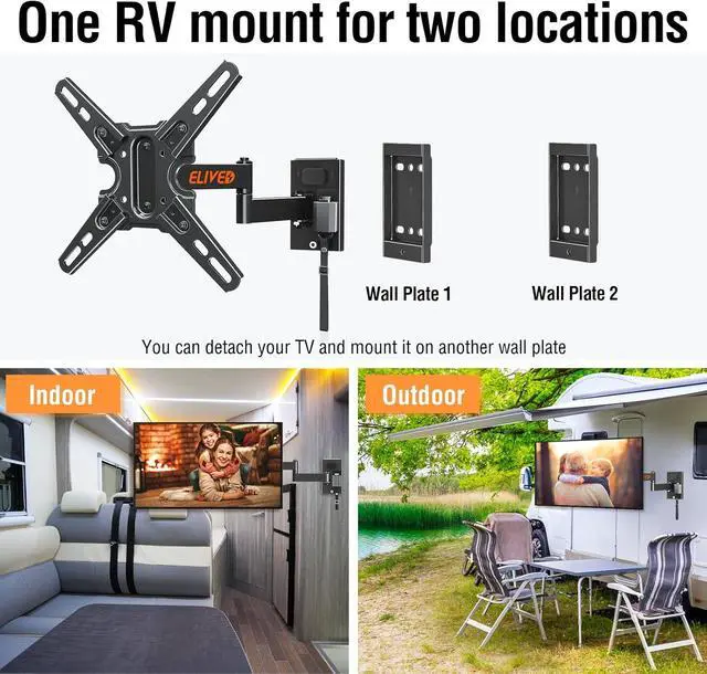 Flexible Center Design: The TV mount features a centered design, allowing you to fold the articulating arms from either the left or right side to lock onto wall plate. This enhances convenience and adaptability to fit various RV environments