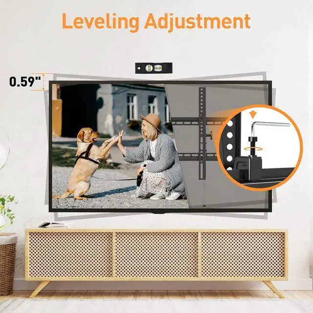 Leveling Adjustment: The leveling bolts on both sides of the TV bracket can adjust the TV to the level state, and the maximum adjustable height of the leveling bolts on both sides is 0.59".