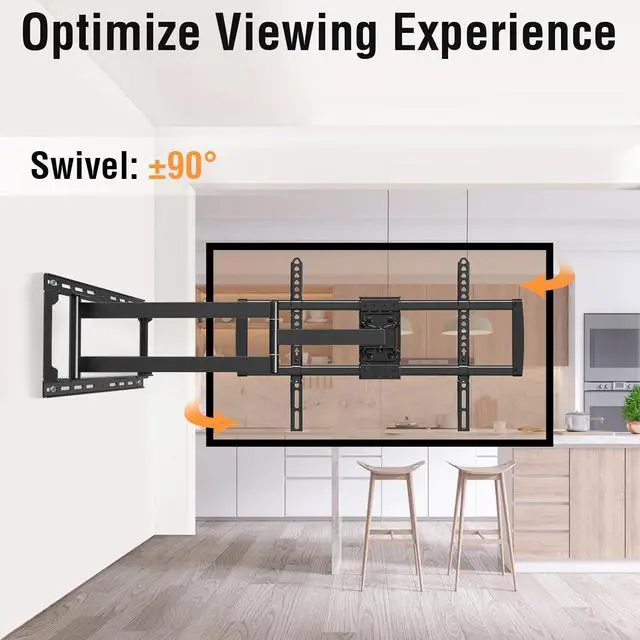 Articulating TV mount - This premium TV wall mount features to tilt +5°/-10°, swivel +/-90° for maximum flexibility. Easily customize your viewing experience no more neck or back pain!